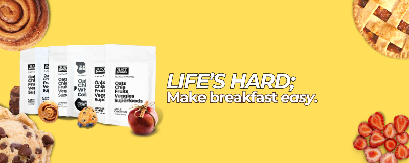 A walk down the breakfast aisle and nothing more than 5g of protein and worse, over 10g of sugar. A stroll down the supplement aisle and nothing but artificial ingredients. We're trying to cross the two over- Whole foods with the convenience of supplements. More satiating than a shake or a bar.